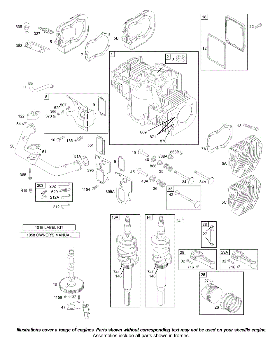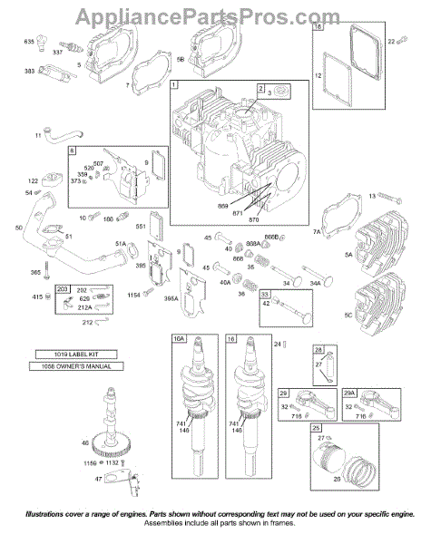 Parts for Briggs & Stratton 42B707-1115-99: Cams, Crankcase Cover, Crankshaft, Cylinder Head, Pistons, Valves Parts