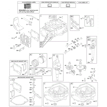 Parts for Briggs & Stratton 12G782-1729-E1: Cams, Crankshaft, Cylinder, Engine Sump, Kit / Gaskets, Lubrication, Piston Group, Valves Parts