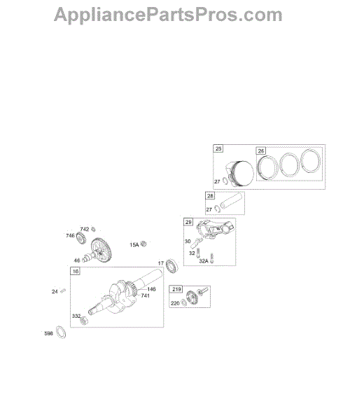 Parts for Briggs & Stratton 127432-0135-E1: Cams, Crankshaft, Head, Piston Group Parts