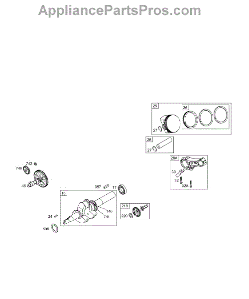 Parts for Briggs & Stratton 113432-0101-E1: Cams, Crankshaft, Piston Group Parts
