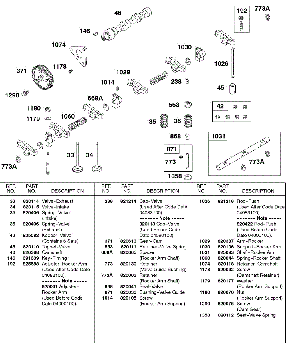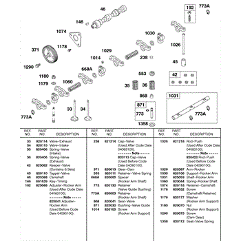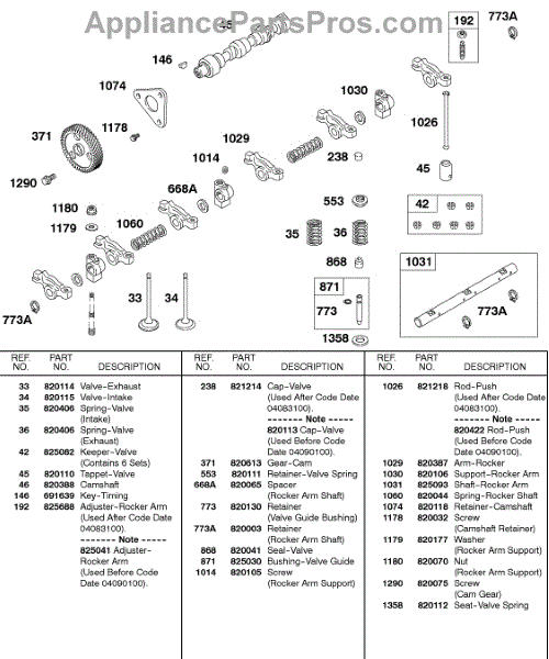 Parts for Briggs & Stratton 581447-0375-E2: Camshaft, Cam Gear, Valves, Springs, Rocker Arm Parts