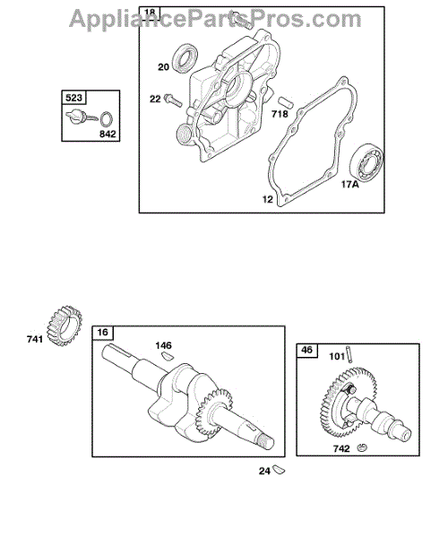 Parts for Briggs & Stratton 050032-0117-E1: Camshaft, Crankcase Cover, Crankshaft Parts