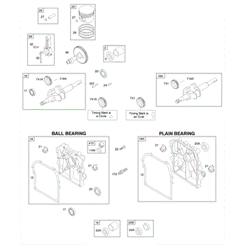 Parts for Briggs & Stratton 091252-1049-E1: Camshaft, Crankcase Cover / Sump, Crankshaft, Piston / Rings / Connecting Rod Parts