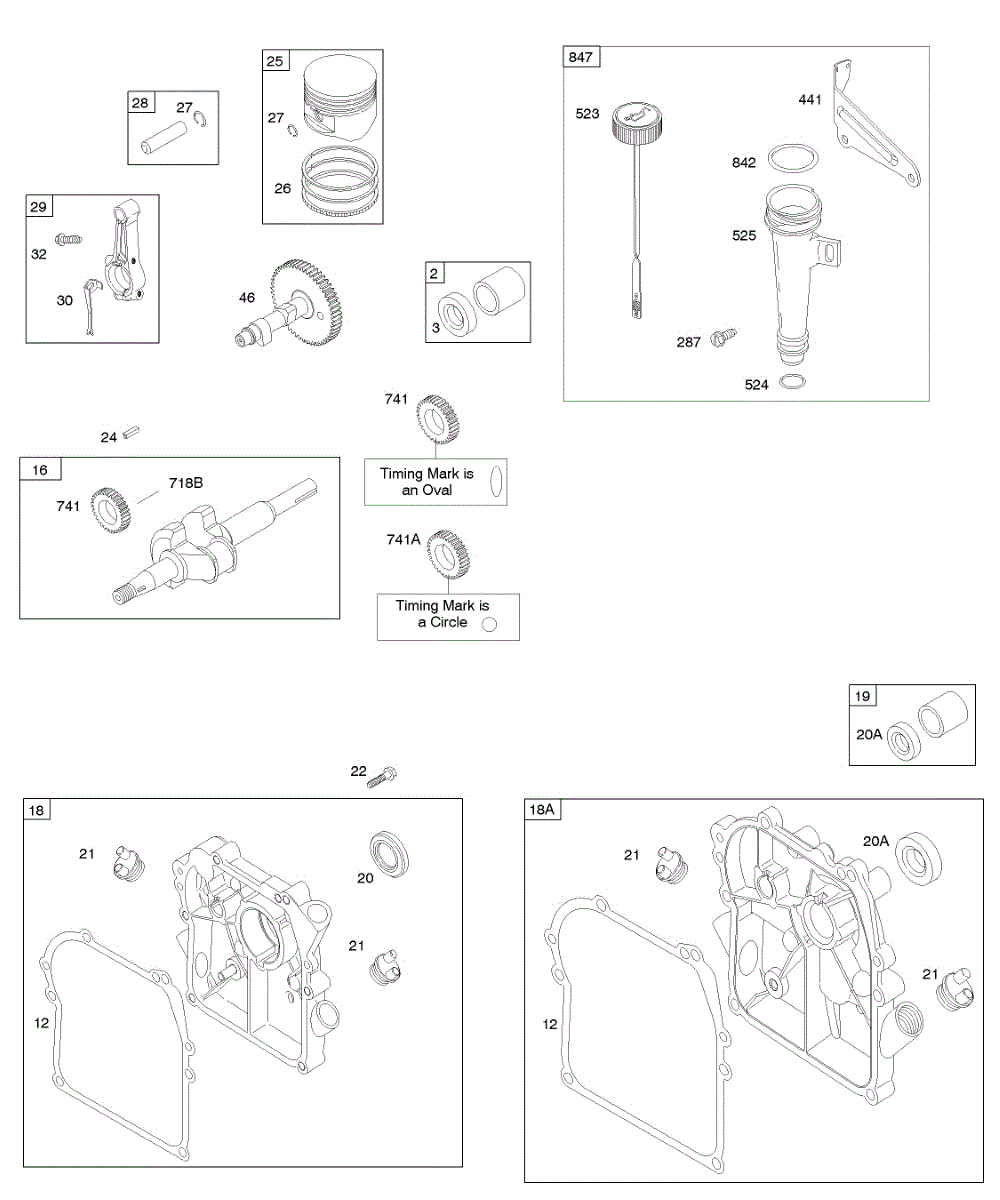 Parts for Briggs & Stratton 095202-0117-E1: Camshaft, Crankcase Cover / Sump, Crankshaft, Lubrication, Piston / Rings / Connecting Rod Parts