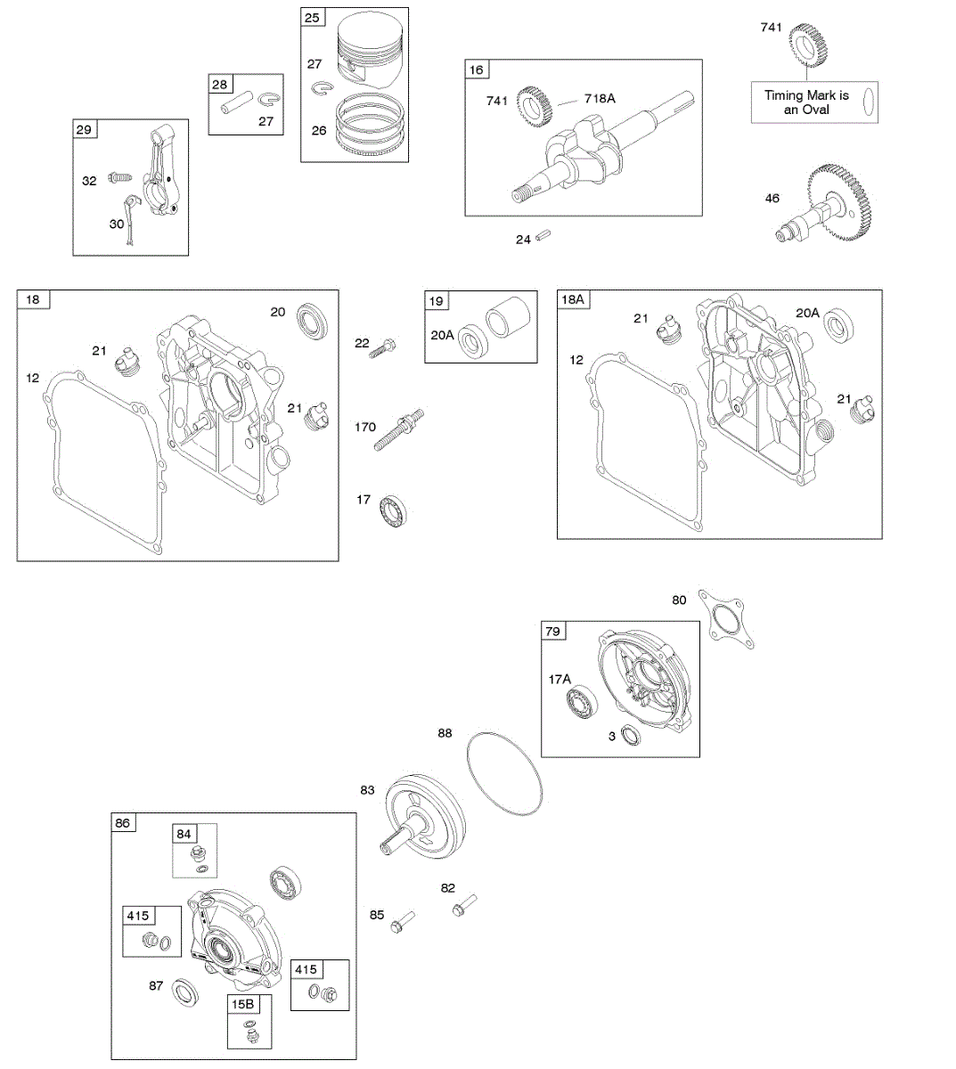 Parts for Briggs & Stratton 095432-0112-E1: Camshaft, Crankcase Cover / Sump, Crankshaft, Gear Reduction, Piston / Rings / Connecting Rod Parts