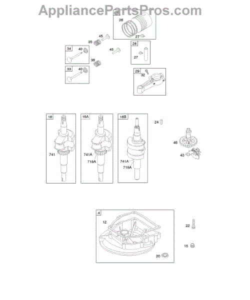 Parts for Briggs & Stratton 09B902-1652-E1: Camshaft, Crankcase Cover / Sump, Crankshaft, Piston / Rings / Connecting Rod Parts
