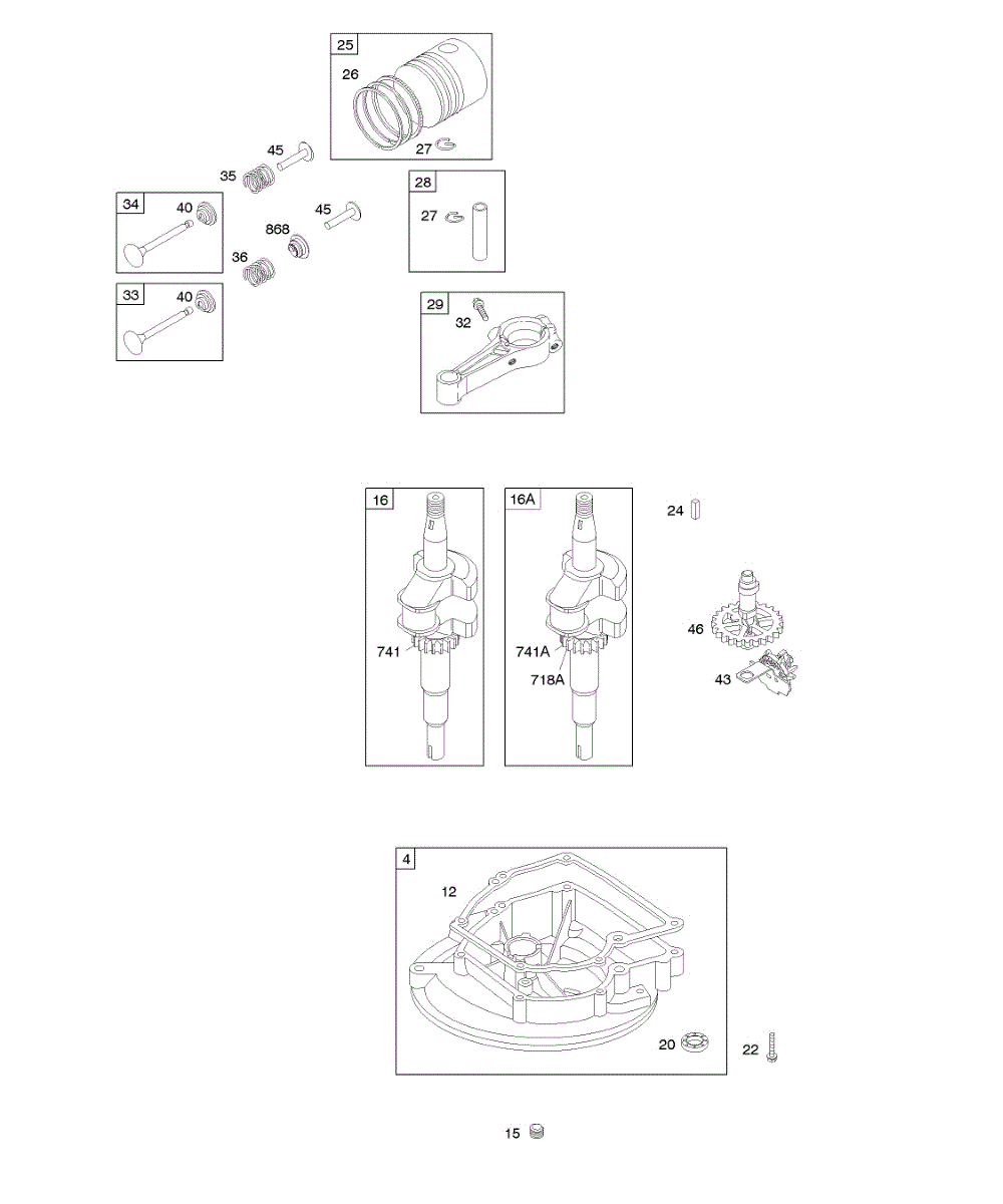 Parts for Briggs & Stratton 09L902-0283-E1: Camshaft, Crankcase Cover / Sump, Crankshaft, Piston / Rings / Connecting Rod Parts