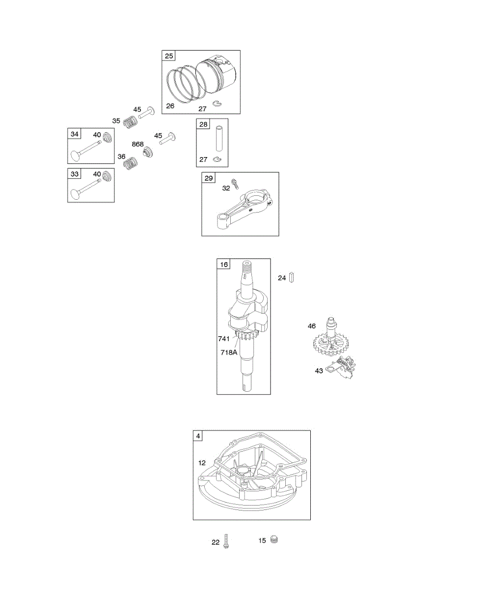 Parts for Briggs & Stratton 10H902-0641-E1: Camshaft, Crankcase Cover / Sump, Crankshaft, Piston / Rings / Connecting Rod Parts
