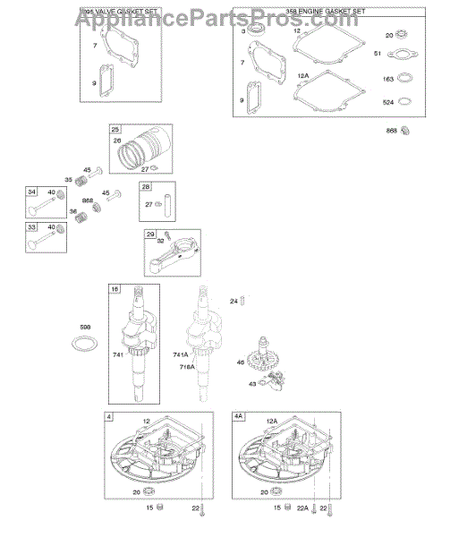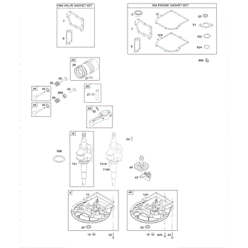 Parts for Briggs & Stratton 10T602-0111-E1: Camshaft, Crankcase Cover / Sump, Crankshaft, Gasket Set - Engine, Gasket Set - Valve, Piston / Rings / Connecting Rod Parts
