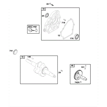 Parts for Briggs & Stratton 118432-0138-E1: Camshaft, Crankcase Cover, Crankshaft Parts