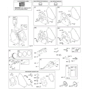 Parts for Briggs & Stratton 121332-0119-E8: Camshaft, Crankcase Cover, Crankshaft, Cylinder, Lubrication, Piston Group Parts