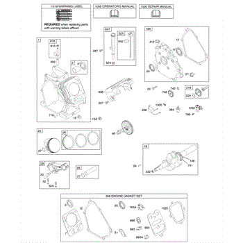 Parts for Briggs & Stratton 124032-0101-E1: Camshaft, Crankcase Cover, Crankshaft, Cylinder, Lubrication, Piston Group Parts