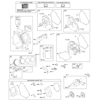 Parts for Briggs & Stratton 124332-0150-E1: Camshaft, Crankcase Cover, Crankshaft, Cylinder, Lubrication, Piston Group Parts