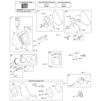 Parts for Briggs & Stratton 128332-0036-E1: Camshaft, Crankcase Cover, Crankshaft, Cylinder, Lubrication, Piston Group Parts