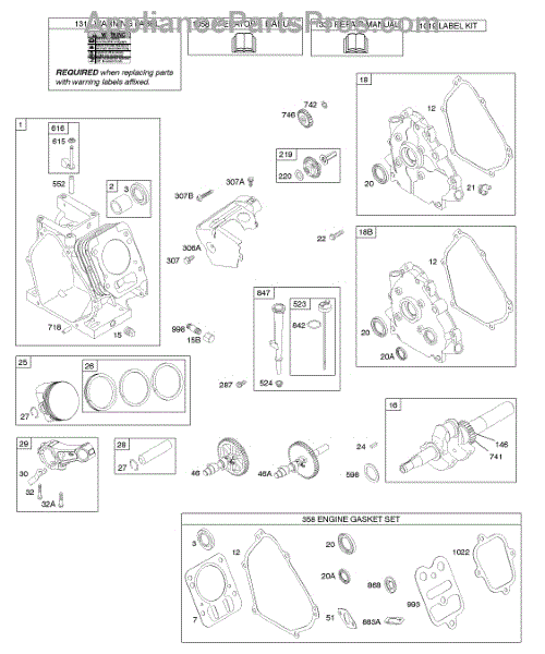 Parts for Briggs & Stratton 12R114-0112-E1: Camshaft, Crankcase Cover, Crankshaft, Cylinder, Lubrication, Piston Group Parts