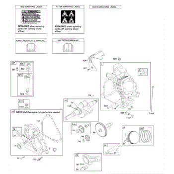 Parts for Briggs & Stratton 201317-0156-E9: Camshaft, Crankcase Cover, Crankshaft, Cylinder, Lubrication, Operator's Manual, Piston / Rings / Connecting Rod, Warning Label Parts