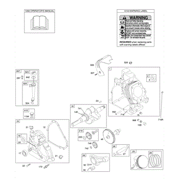 Parts for Briggs & Stratton 201412-0120-E1: Camshaft, Crankcase Cover, Crankshaft, Cylinder, Lubrication, Operator's Manual, Piston / Rings / Connecting Rod, Warning Label Parts