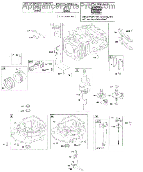 Parts for Briggs & Stratton 120612-0132-E2: Camshaft, Crankshaft, Cylinder, Engine Sump, Lubrication, Piston Group Parts