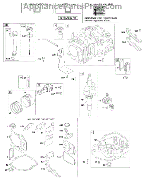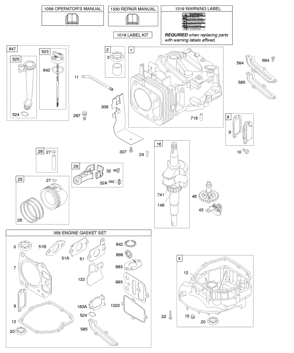 Parts for Briggs & Stratton 127602-0331-E2: Camshaft, Crankshaft, Cylinder, Engine Sump, Lubrication, Piston Group Parts