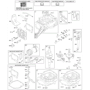 Parts for Briggs & Stratton 127802-2005-E1: Camshaft, Crankshaft, Cylinder, Engine Sump, Lubrication, Piston Group, Valves Parts