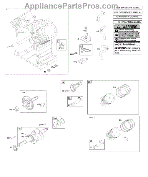 Parts for Briggs & Stratton 295447-0126-E2: Camshaft, Crankshaft, Cylinder, Piston / Rings / Connecting Rod Parts