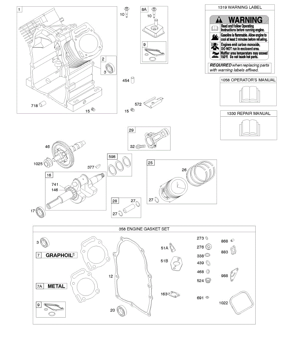 Engine bushing and seal kit prevents oil leaks and reduces friction. Replace when you notice oil seepage or unusual noise. Verify fit with your model number.