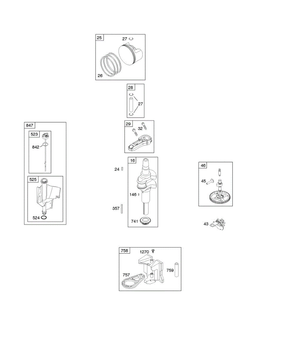Parts for Briggs & Stratton 215902-0117-E1: Camshaft, Crankshaft, Lubrication, Piston, Rings, Connecting Rod Parts