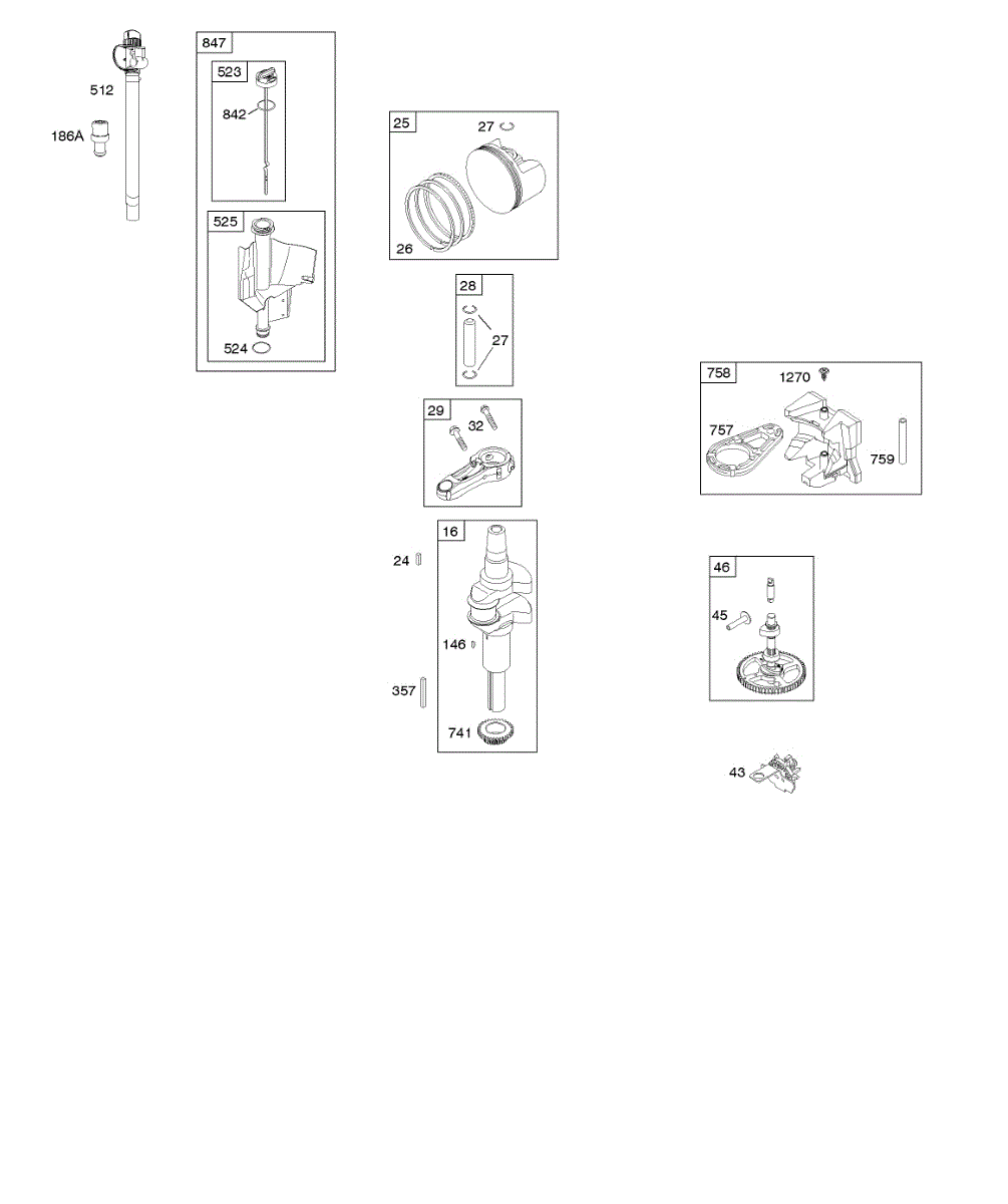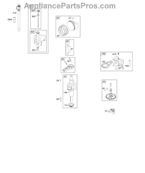Parts for Briggs & Stratton 219802-0132-E1: Camshaft, Crankshaft, Lubrication, Piston, Rings, Connecting Rod Parts