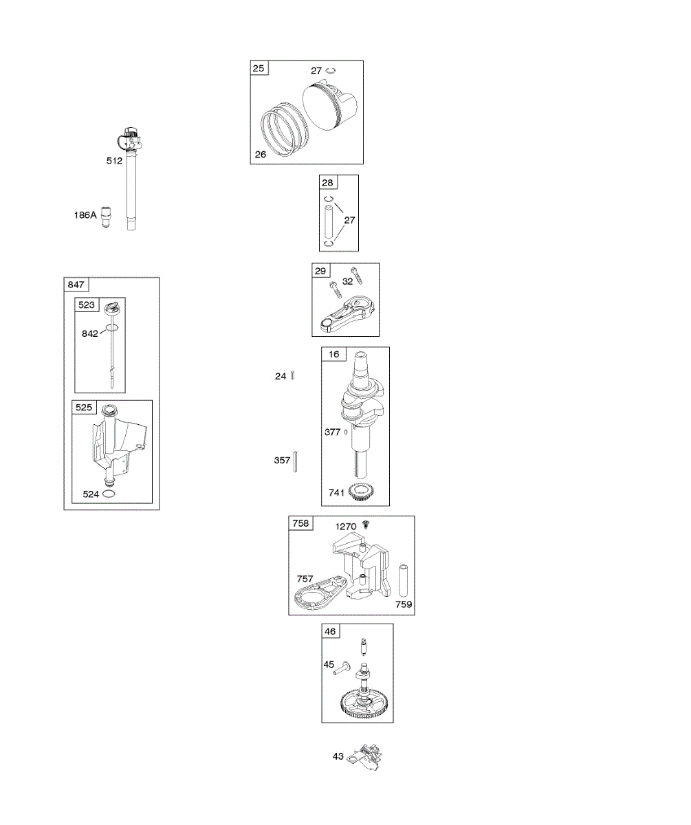 Parts for Briggs & Stratton 219907-0112-E1: Camshaft, Crankshaft, Lubrication, Piston, Rings, Connecting Rod Parts