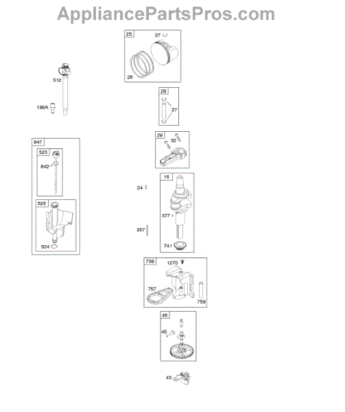 Parts for Briggs & Stratton 219907-0119-E1: Camshaft, Crankshaft, Lubrication, Piston, Rings, Connecting Rod Parts