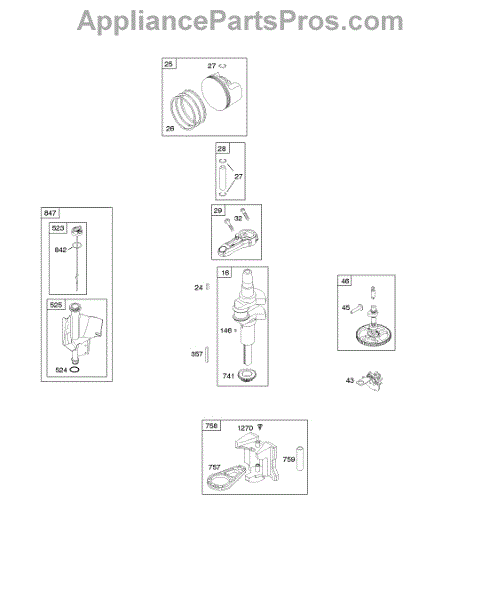 Parts for Briggs & Stratton 21A902-0141-E1: Camshaft, Crankshaft, Lubrication, Piston, Rings, Connecting Rod Parts