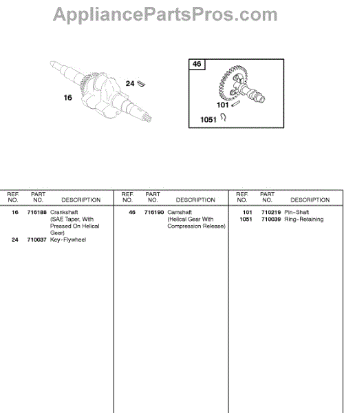 Parts for Briggs & Stratton 187432-0114-E9: Camshaft, Crankshaft Parts