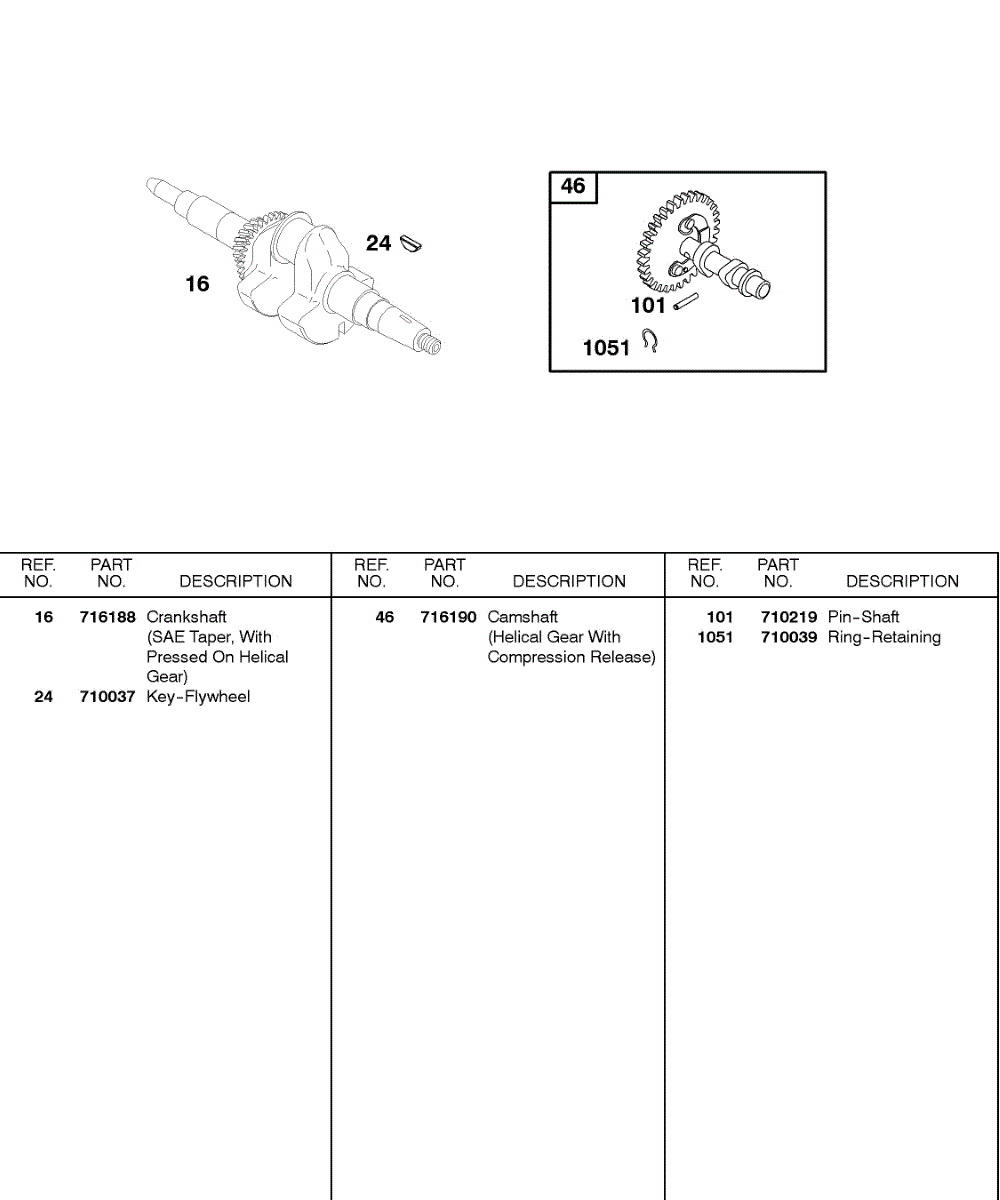 Parts for Briggs & Stratton 187437-0113-E1: Camshaft, Crankshaft Parts