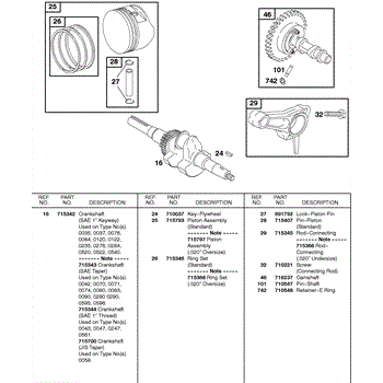 Parts for Briggs & Stratton 235437-0522-E1: Camshaft, Crankshaft, Piston, Rings, Connecting Rod Parts