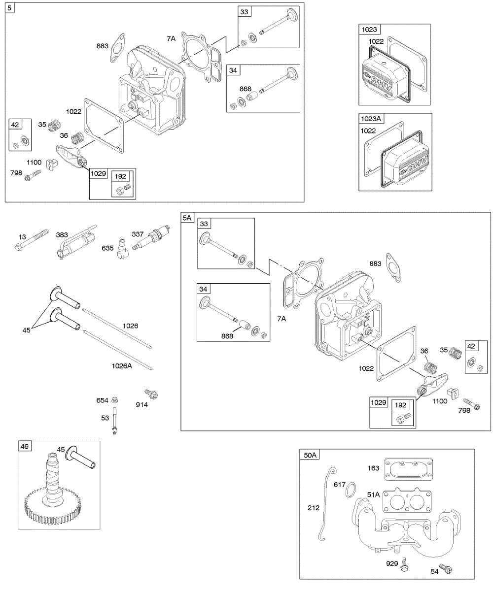 Parts for Briggs & Stratton 446877-0412-E1: Camshaft, Cylinder Head, Lubrication, Piston, Rings, Connecting Rod, Valves Parts