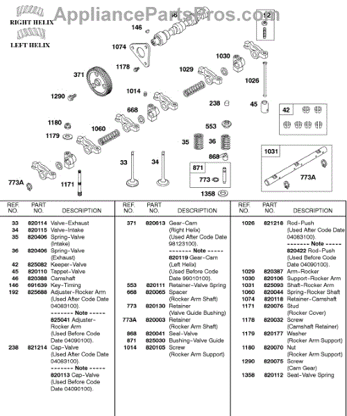 Parts for Briggs & Stratton 580447-0215-E2: Camshaft, Rocker Arm, Valves, Springs Parts