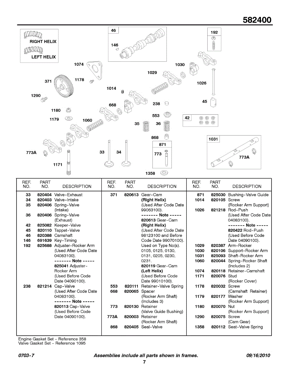 Parts for Briggs & Stratton 582447-0222-E2: Camshaft, Rocker Arm Parts