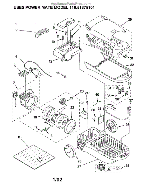Parts for Kenmore 116.21875101 (11621875101, 116 21875101): Canister Parts