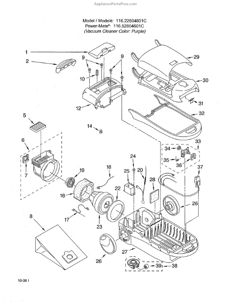 Parts for Kenmore 116.22804601C (11622804601C, 116 22804601C): Canister Parts