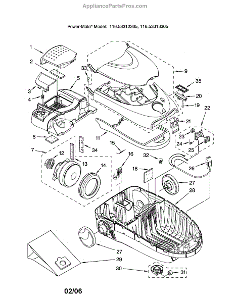 Parts for Kenmore 116.23312305 (11623312305, 116 23312305): Canister Parts