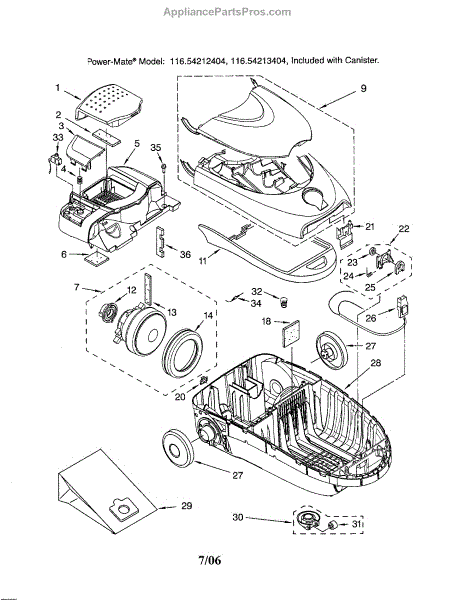 Parts for Kenmore 116.24213404 (11624213404, 116 24213404): Canister Parts
