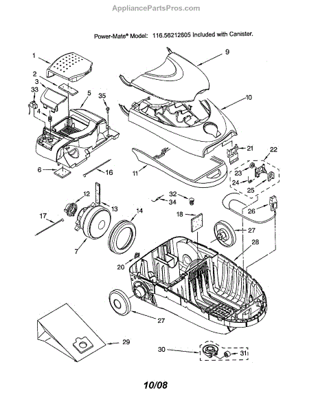 Parts for Kenmore 116.26212605 (11626212605, 116 26212605): Canister Parts