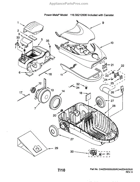 Parts for Kenmore 116.26212606 (11626212606, 116 26212606): Canister Parts