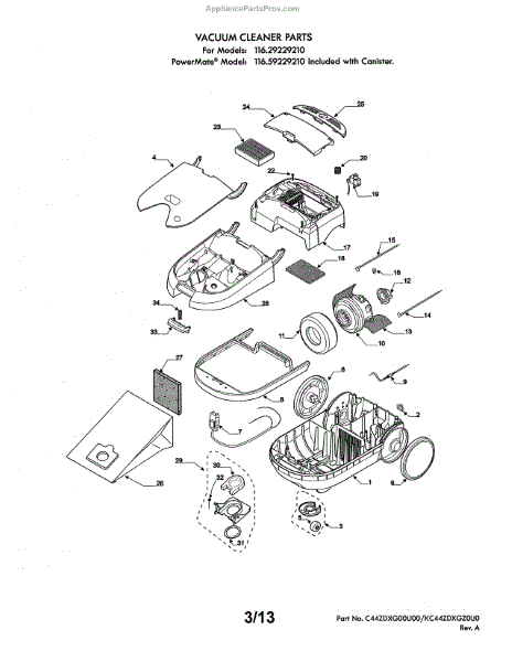 Parts for Kenmore 116.29229210 (11629229210, 116 29229210): Canister Parts
