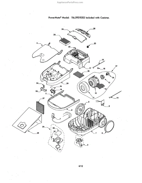 Parts for Kenmore 116.29319212 (11629319212, 116 29319212): Canister Parts
