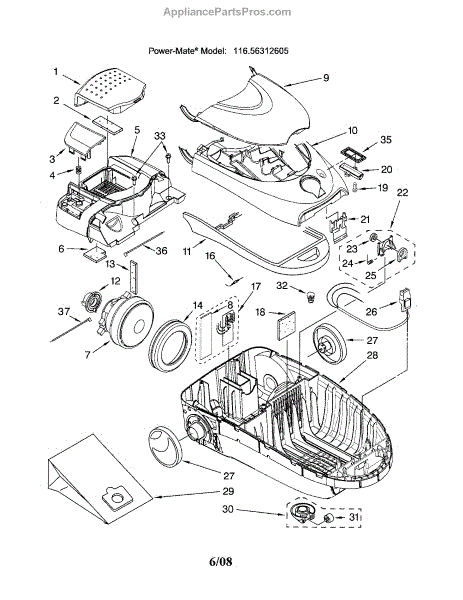 Parts for Kenmore 116.26312605 (11626312605, 116 26312605): Canopy / Base Parts