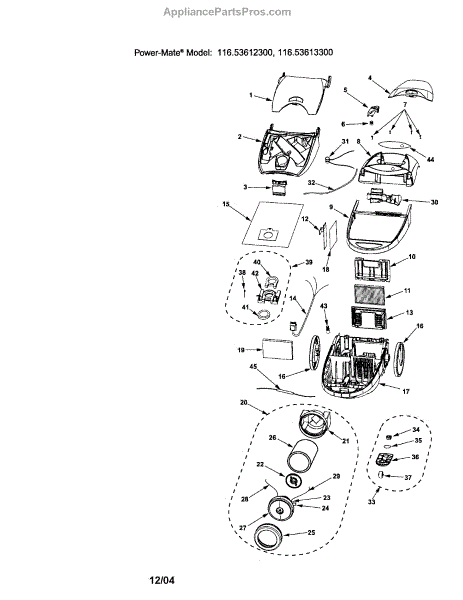 Parts for Kenmore 116.23612300 (11623612300, 116 23612300): Canopy / Body / Motor / Wheels Parts