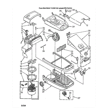 Parts for Kenmore 116.2481190 (1162481190, 116 2481190): Canopy / Cover / Motor Parts