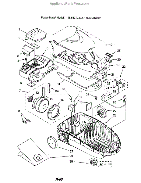 Parts for Kenmore 116.23313302 (11623313302, 116 23313302): Canopy / Hood / Base Parts