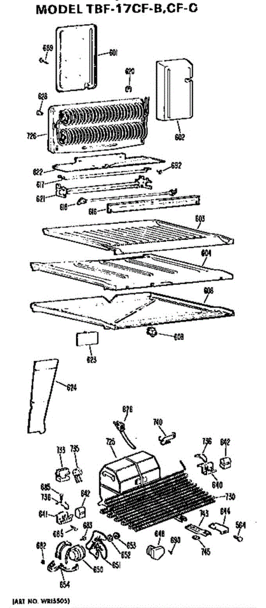 Parts for Ge TBF17CFC: Capacitor / Motor Evap Fan Parts
